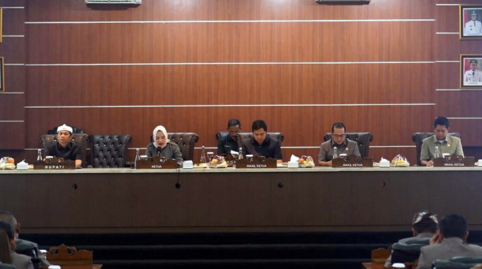 Rapat dipimpin Ketua DPRD Purwakarta, Sri Puji Utami didampingi Wakil Ketua I DPRD Dias Rukmana Praja, Wakil Ketua II DPRD Luthfi Bamala, Wakil Ketua III DPRD H. Entis Sutisna, SH.,M.M dan Sekretaris DPRD Rudi Hatono, S.AP.,M.M., dengan dihadiri 31 anggota dewan.